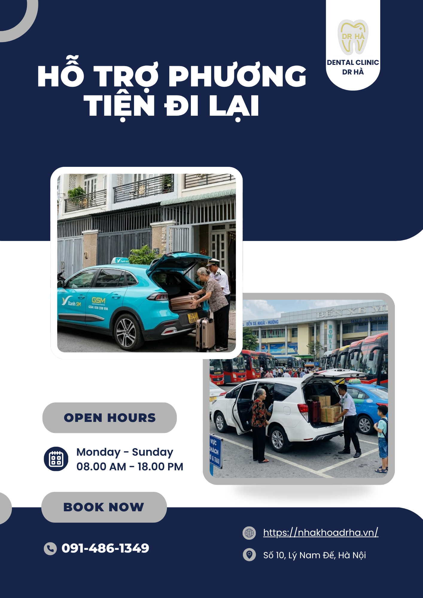 – Chi phí xe Taxi, Grap từ điểm dừng xe khách tới Nha Khoa Dr Hà